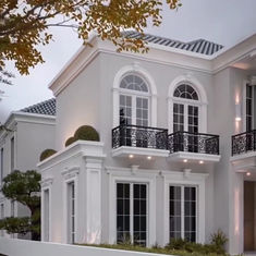 This residence is a refined expression of classical architecture, reinterpreted through a contemporary lens. Defined by its elegant proportions, arched openings, and articulated façade, the design balances grandeur with restraint. Layered cornices, decorative columns, and bespoke wrought-iron detailing establish a sense of permanence and craftsmanship, while expansive glazing softens the form and invites natural light deep into the home.